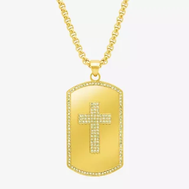Mens Lab Created Cubic Zirconia Stainless Steel Cross 24 Inch Pendant Necklace