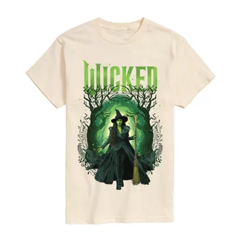 Wicked Shiz University Men's Big and Tall Short Sleeve Graphic T-Shirt - Show off your bold side with Wicked graphic apparel for men. Inspired by the hit musical, these tees feature striking designs of Elphaba, Glinda, and the world of Oz, blending dramatic style with a touch of rebellion—perfect for fans who like their fashion with a little magic and edge.