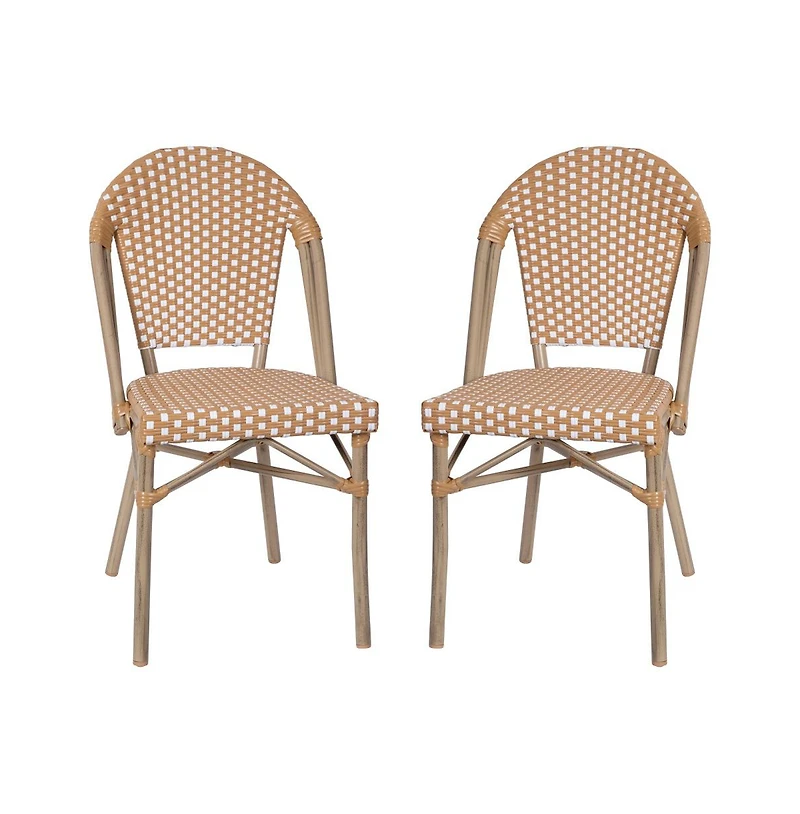 Elegance comes easy to this set of 2 bistro chairs with woven Pe rattan backs and seats offering supportive seating in three color options to suit your style static weight. Floor glides ensure smooth movement and protect your hard flooring surfaces when used indoors.