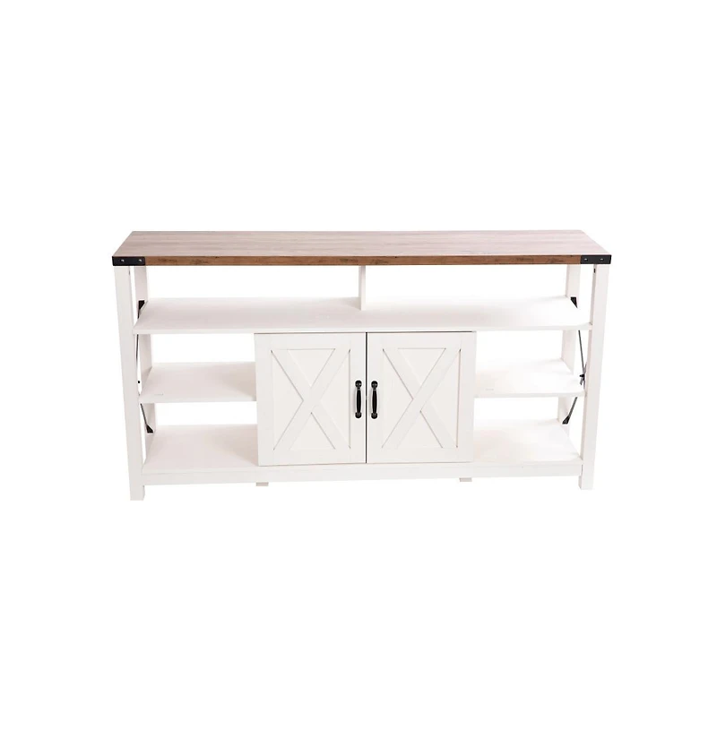 There's a rustic farmhouse feel to this media console buffet that also features stylish and convenient storage. Finely crafted from engineered wood and metal hardware with steel brackets.