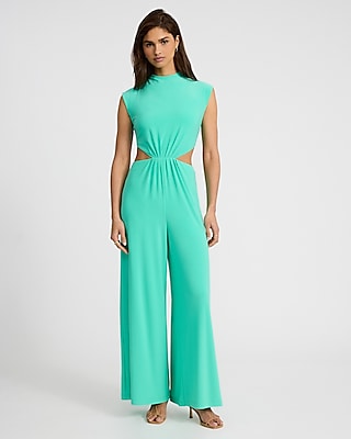 Mock Neck Cap Sleeve Cutout Wide Leg Jumpsuit