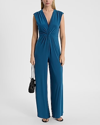 V-Neck Surplice Tie Waist Wide Leg Jumpsuit