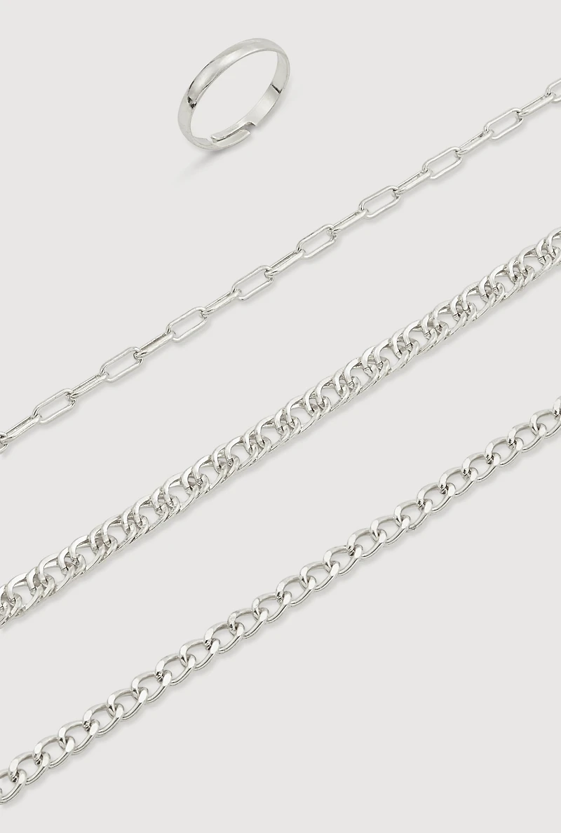 Metallic Chain Anklet Trio with Toe Ring in Ponce, PR