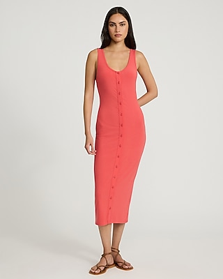 Ribbed Scoop Neck Button Down Midi Dress
