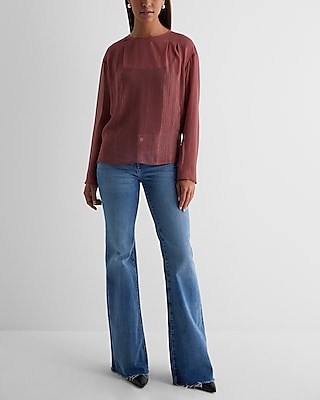 Metallic Sheer Gathered Shoulder Long Sleeve Top