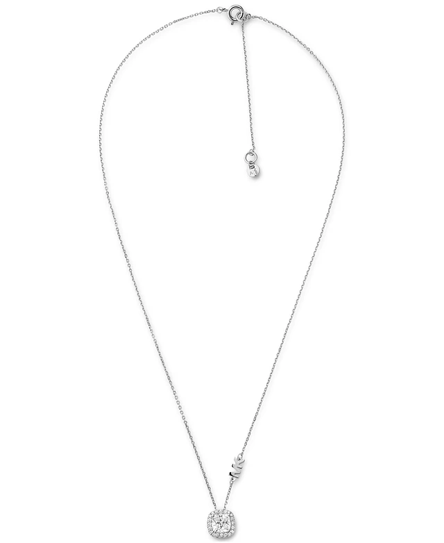 Michael Kors Silver-Tone Halo Crystal Pendant Necklace, 16" + 2" extender