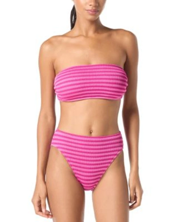Michael Michael Kors Womens Bandeau Bikini Top High Rise Bikini Bottoms