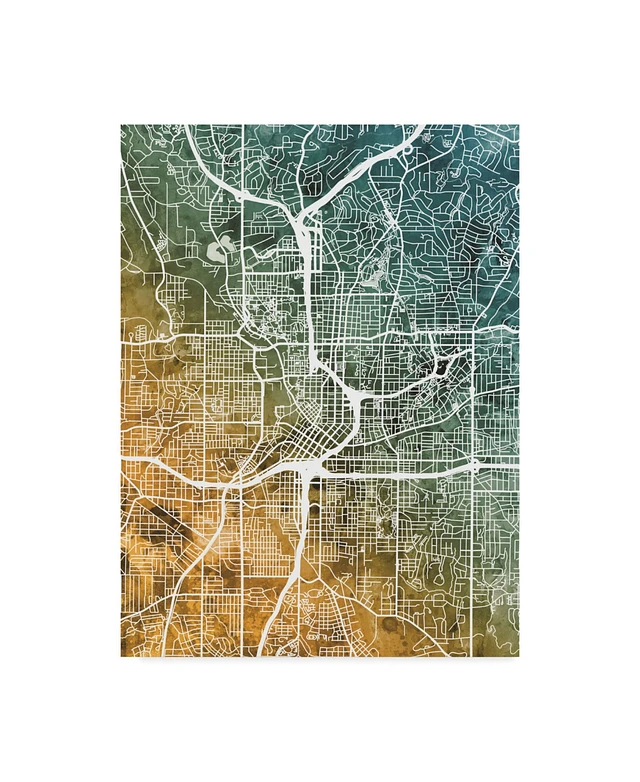 Michael Tompsett Atlanta Georgia City Map Teal Orange Canvas Art - 20" x 25"