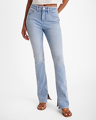 Mid Rise Light Wash Raw Hem Bootcut Jeans