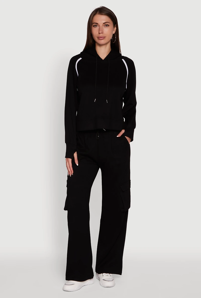 Mid Rise Drawstring Casual Wide Leg Cargo Pants