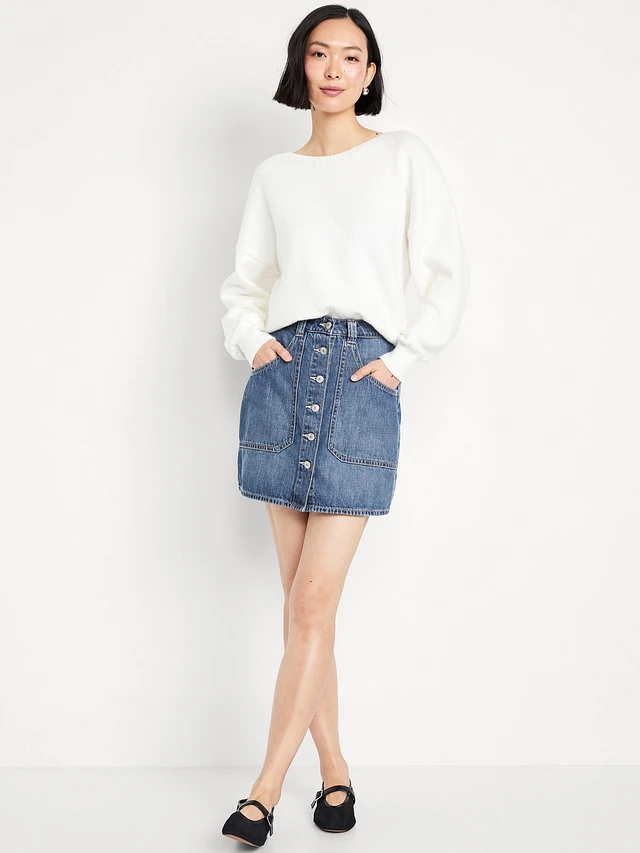 High-Waisted Button-Front Utility Mariner Jean Skirt for Girls