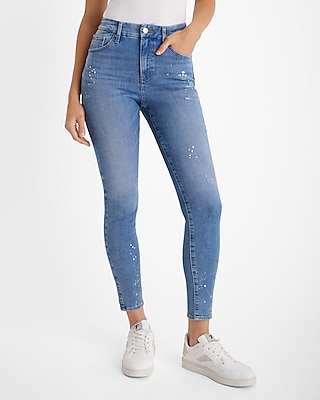 High Waisted Medium Wash Splatter Paint FlexX Skinny Jeans