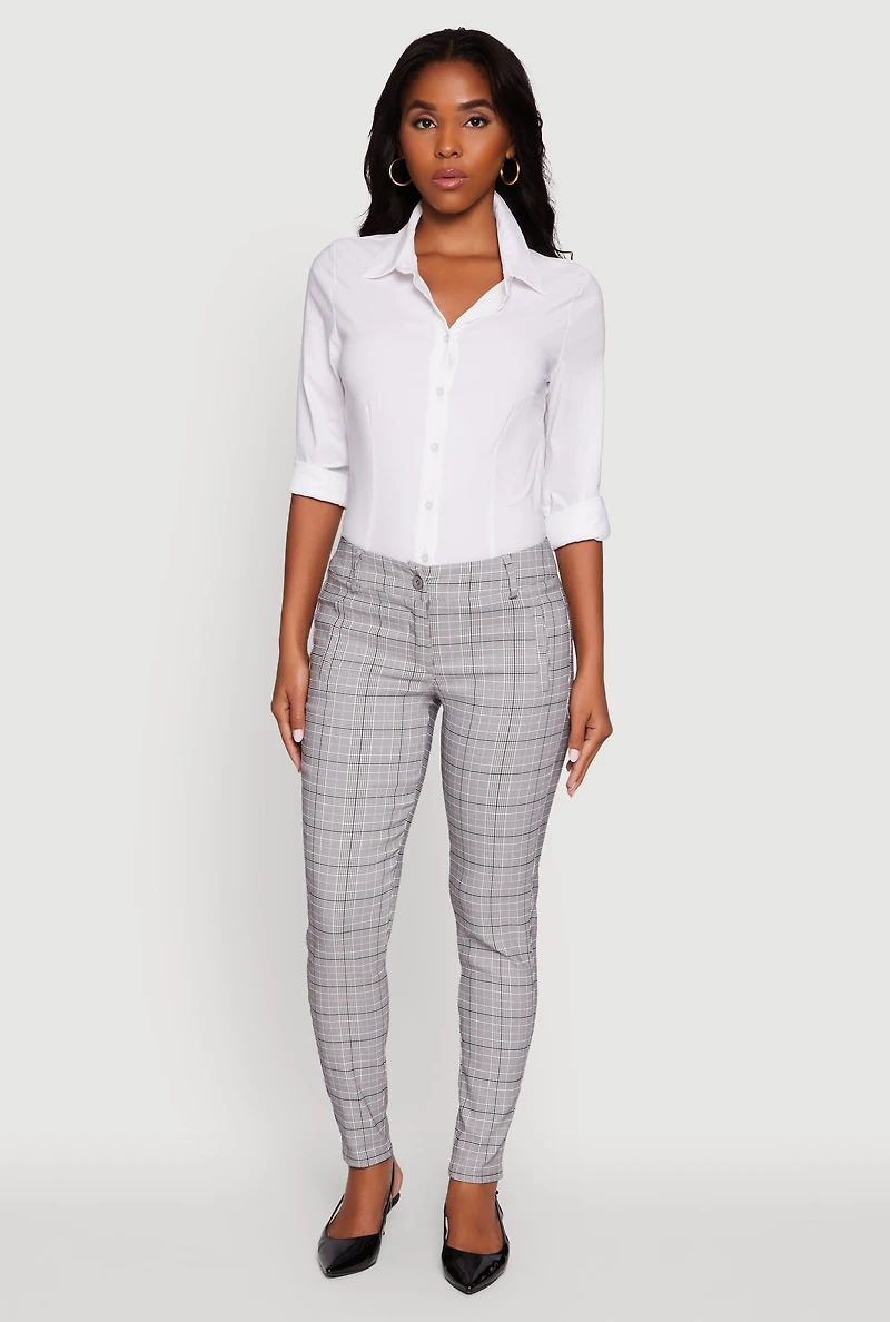 Mid Rise Plaid Skinny Dress Pants