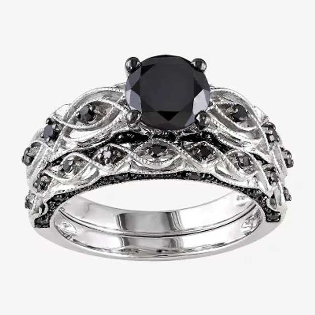 Womens 1 1/2 CT.T.W. Color Enhanced Black & White Diamond Sterling Silver Bridal Set
