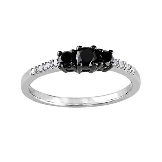 Midnight Black Womens 1 1/7 CT. T.W. Natural Diamond 14K White Gold Round 3-Stone Engagement Ring