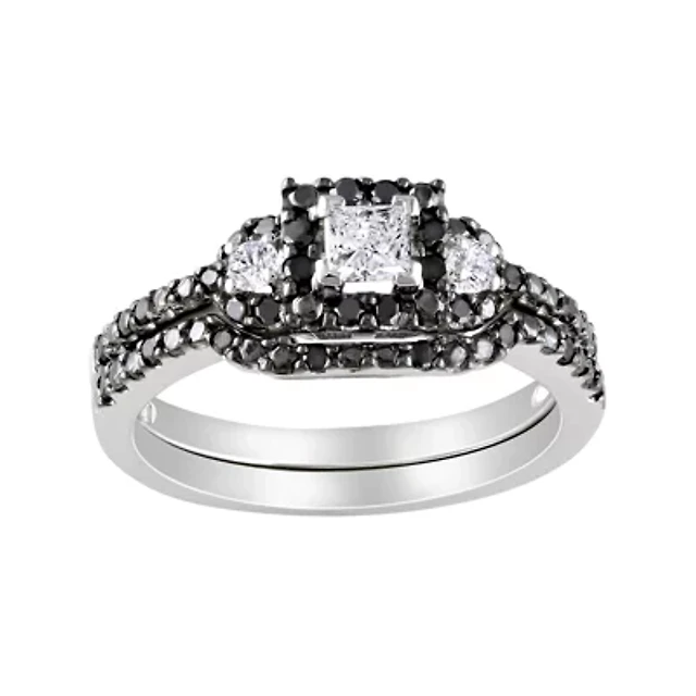 Midnight Black Diamond 1 CT.T.W. White and Color-Enhanced Bridal Ring Set