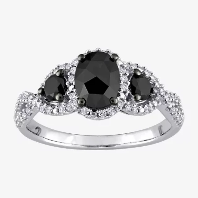 Midnight Black Womens 1 3/8 CT. T.W. Natural Diamond 10K White Gold Oval Side Stone 3-Stone Engagement Ring