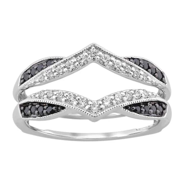 Midnight Black Womens 1/3 CT. T.W. Natural Diamond 14K White Gold Ring Guard