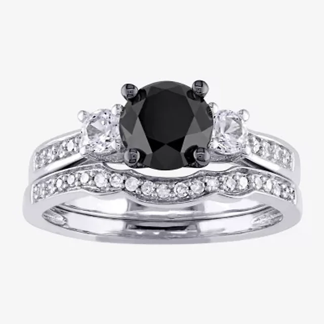 Midnight Black Womens 3 CT. T.W. Natural Diamond 10K White Gold Round Side Stone 3-Stone Bridal Set