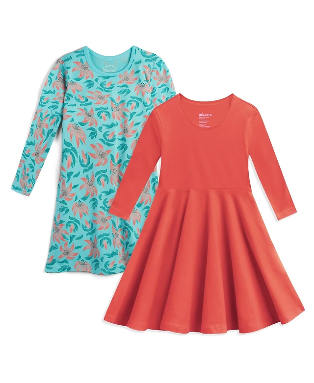 Mightly Toddler Girls Fair Trade Organic Cotton Long Sleeve Dresses 2-pack