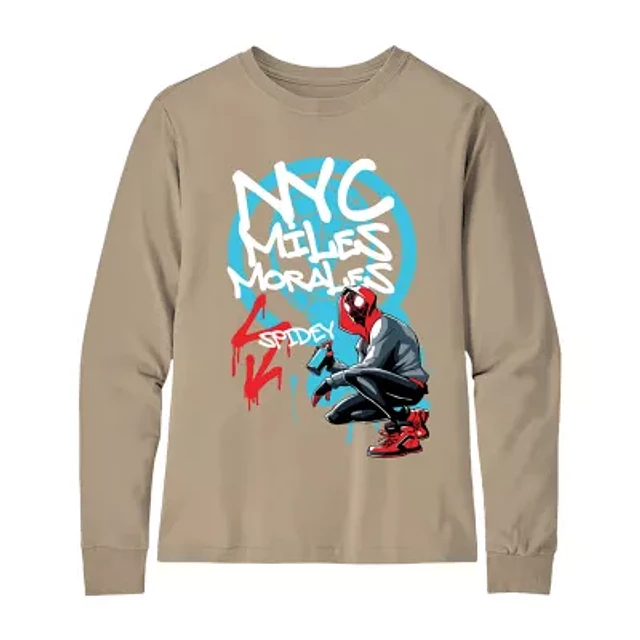 Miles Morales Little & Big Kid Boys Crew Neck Long Sleeve Regular Fit Spiderman Graphic T-Shirt