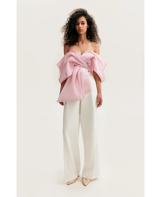 Milla Women's Pink Organza Off-Shoulder Blouse With Mergue Flounces