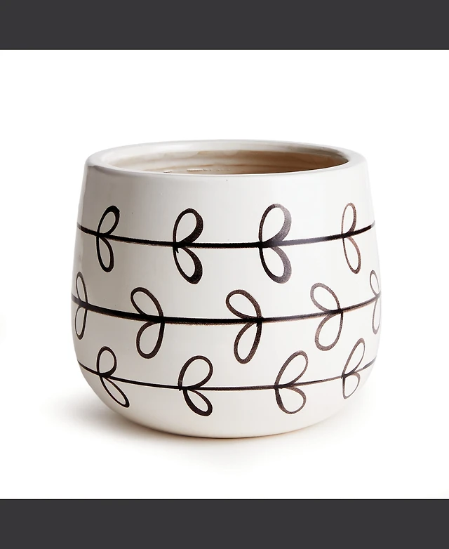 Hand-Painted Stoneware Planter with Gold-Tone Design, Holds 5" Pot