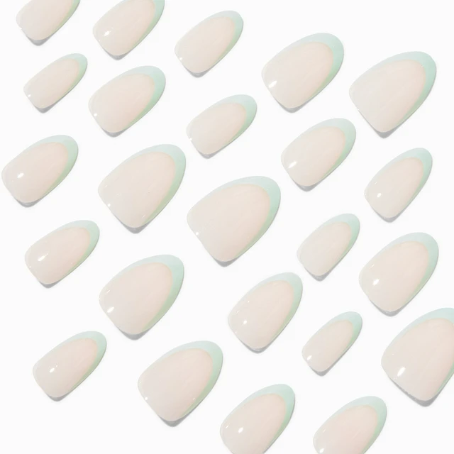 Mint Green French Tip Almond Vegan Faux Nail Set - 24 Pack