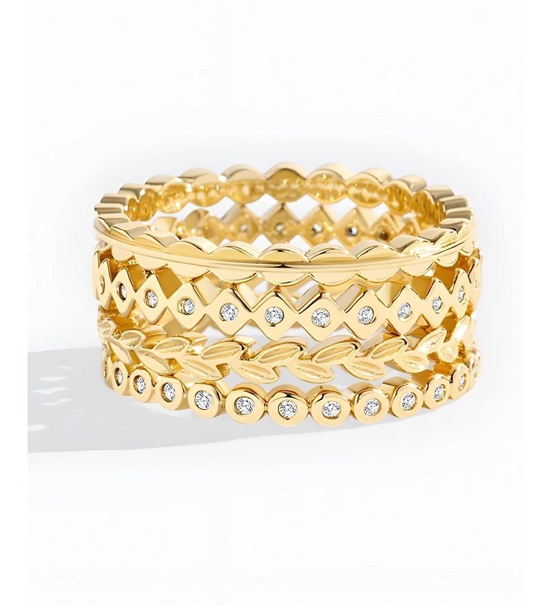 Dainty gold-plated rings designed to blend seamlessly with your style. Each slim band adds a little shine, whether you stack them high or keep it simple. Easy, everyday pieces that feel just right.Includes 4 rings.