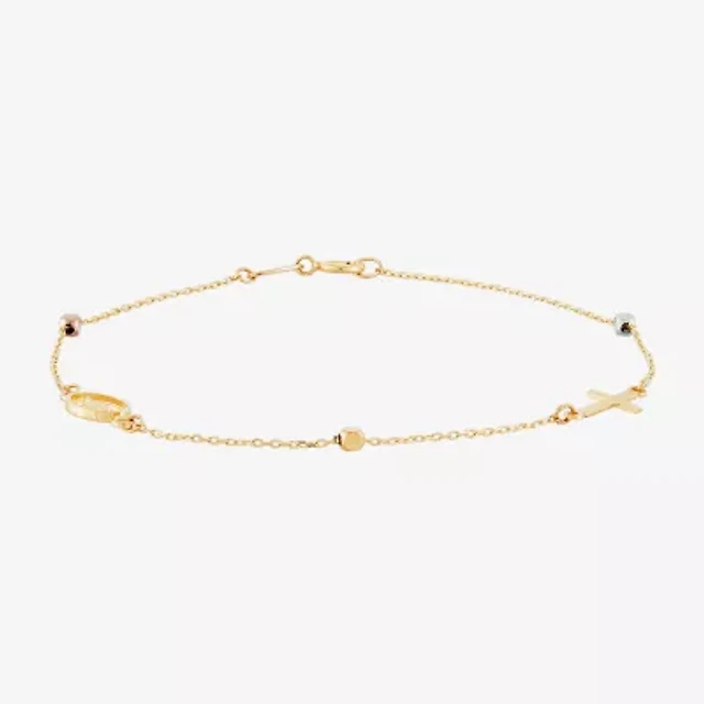 Miraculous Medal Womens 14K Tri-Color Gold Cross 7.25 Inch Link Bracelet