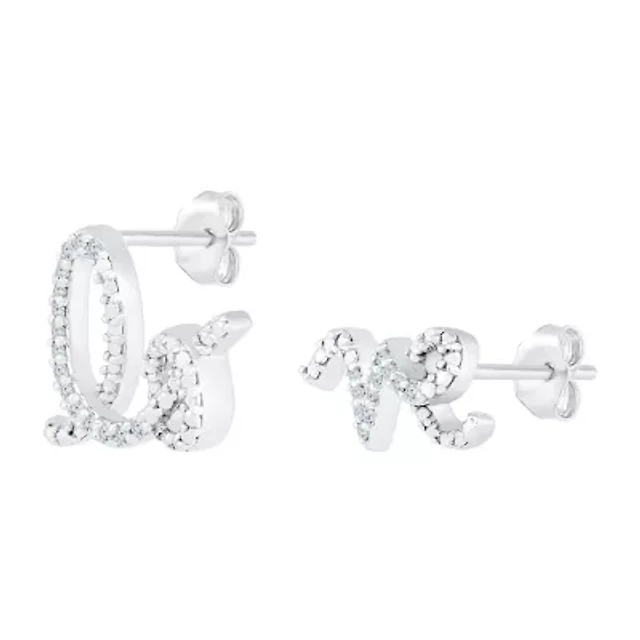 Mismatched "Love" Diamond Accent Natural White Diamond Sterling Silver 23mm Stud Earrings