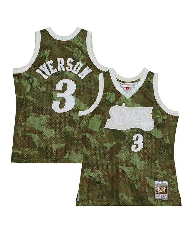 Mitchell & Ness Men's Allen Iverson Camo Philadelphia 76ers Hardwood Classics 1997/98 Ghost Green Swingman Jersey
