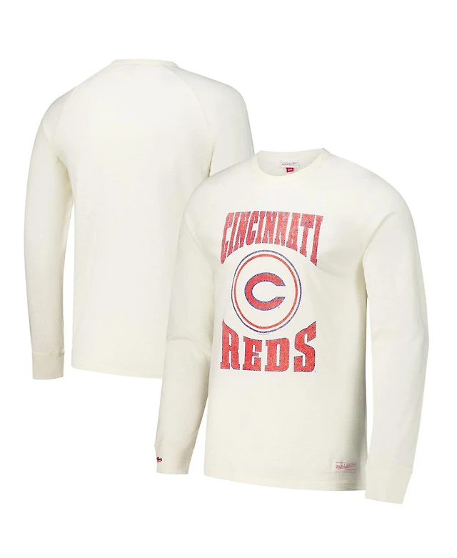 Mitchell & Ness Men's Cream Cincinnati Reds Arched Logo Slub Long Sleeve T-Shirt