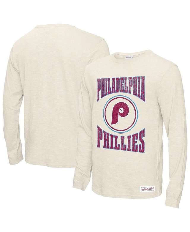Mitchell & Ness Men's Cream Philadelphia Phillies Arched Logo Slub Long Sleeve T-Shirt