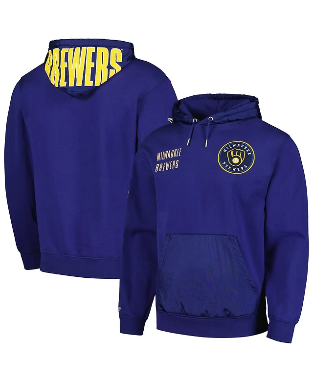 Men's Mitchell & Ness Royal, Gold Milwaukee Brewers Colorblocked Fleece Pullover Hoodie