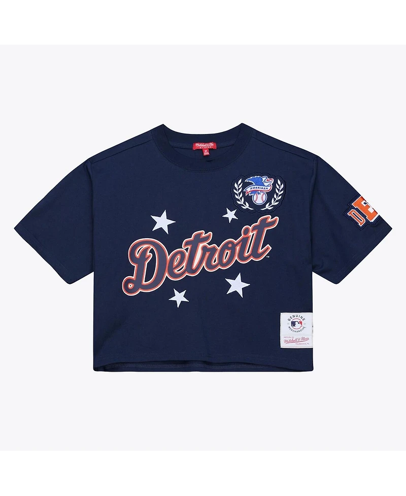 Mitchell Ness Women's Navy Detroit Tigers Pep Rally Cropped Boxy T-Shirt