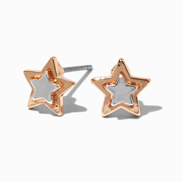Mixed Metal Star Stud Earrings