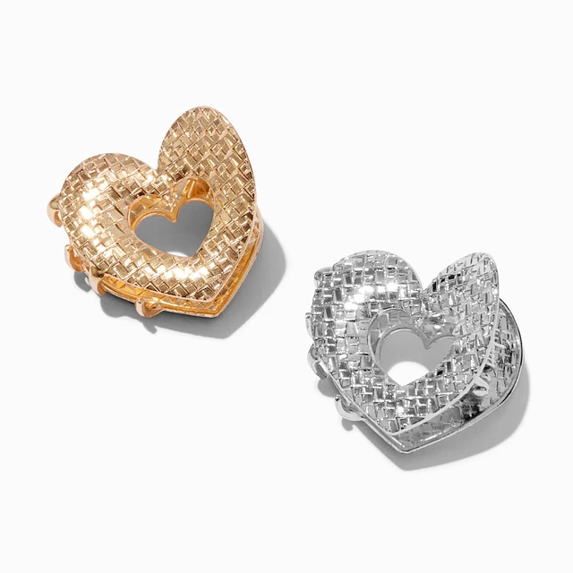 Mixed Metal Textured Heart Hair Claws - 2 Pack
