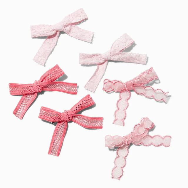 Mixed Pink Lace Hair Bow Clips - 6 Pack