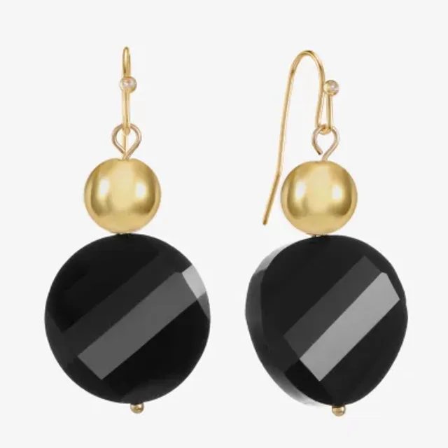 Mixit Gold Tone Womens Black Glass Round Drop Earrings