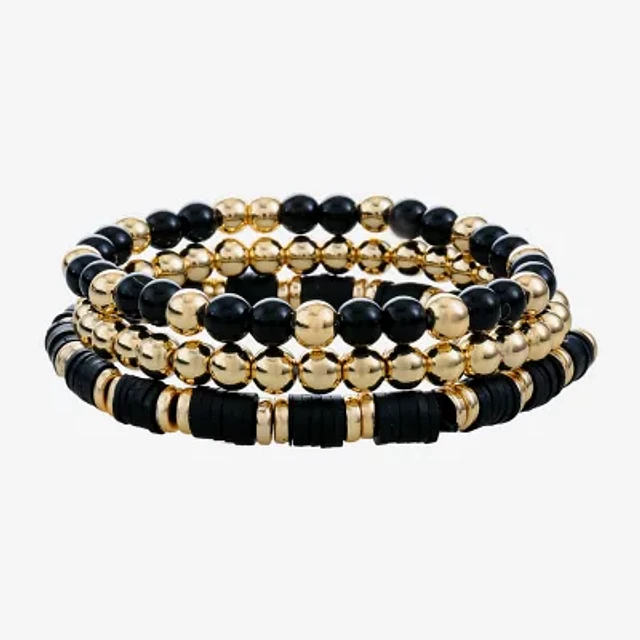 Mixit Gold Tone & Black Beaded Stretch Womens 3-pc. Bracelet Set