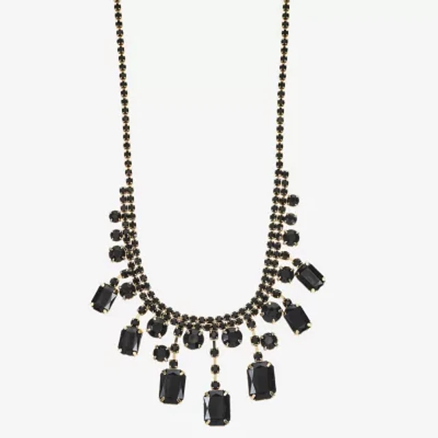 Mixit Silver Tone & Black Bib Womens Black 17 Inch Statement Necklace