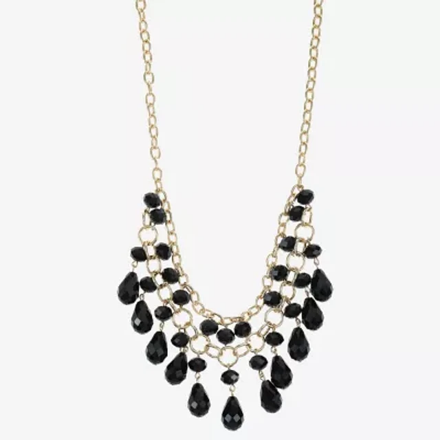 Mixit Silver Tone & Black Bib Womens Black 17 Inch Statement Necklace