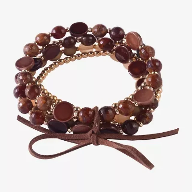 Rachel Rachel Roy Gold Tone and Brown Beaded 2pc Bracelet Set