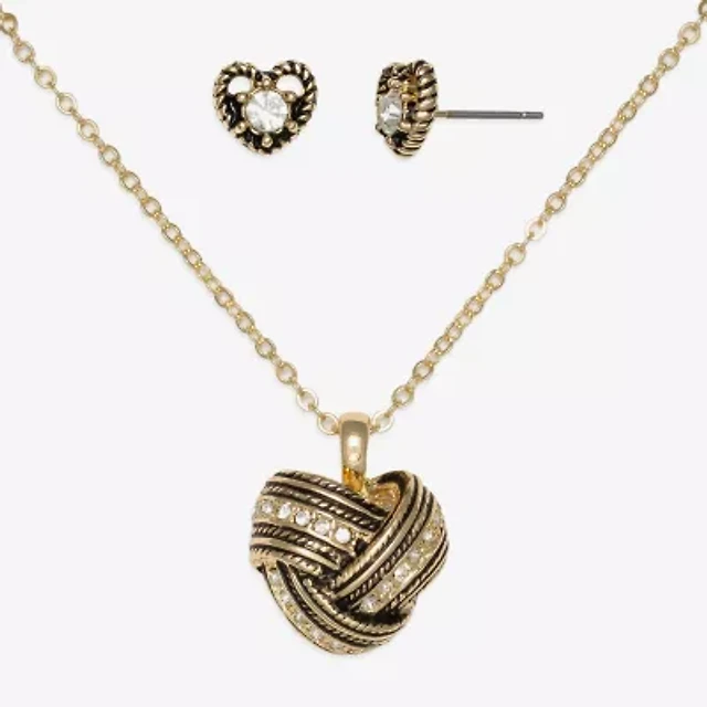 Mixit Womens Cubic Zirconia Stainless Steel Heart Knot Hypoallergenic 2-pc. Jewelry Set