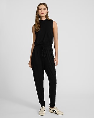 Sleeveless Mock Neck Elastic Waist Jumpsuit
