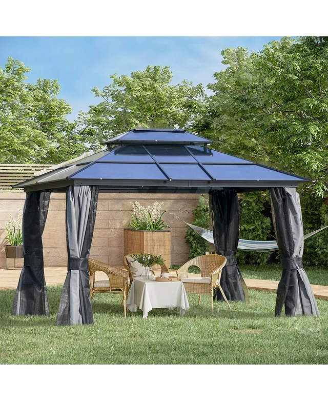 Outsunny 10' x 12' Outdoor Steel Frame Gazebo with Twin-Wall Polycarbonate Hardtop Roof and Removable Curtains