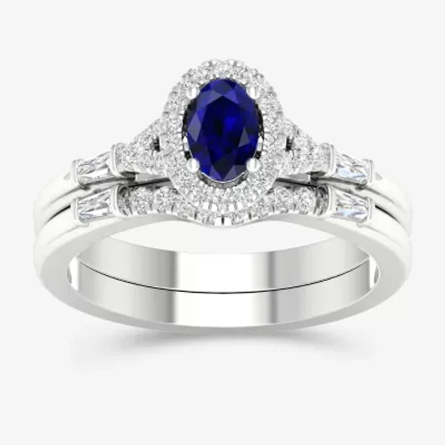 Modern Bride Gemstone Womens 1/3 CT. T.W. Genuine Blue Sapphire 10K White Gold Halo Bridal Set