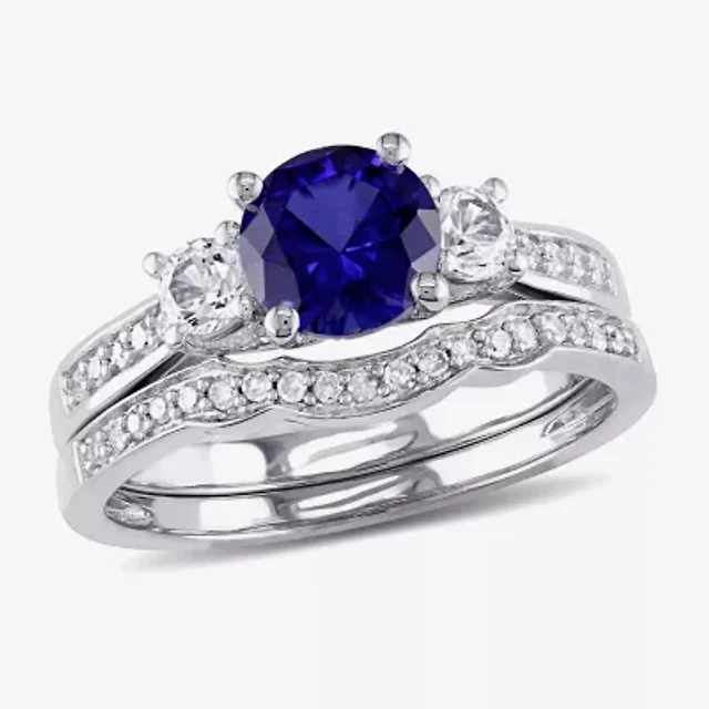 Modern Bride Gemstone Womens Blue & White Lab Created Sapphire Sterling Silver Bridal Set
