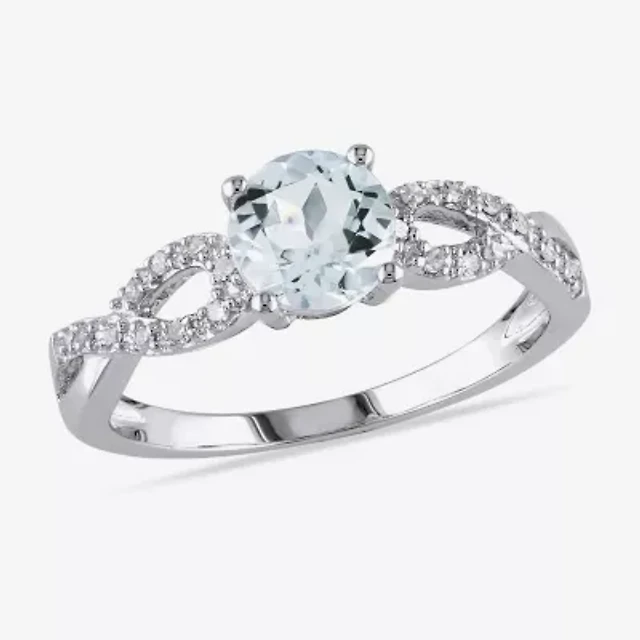 Modern Bride Gemstone Womens 1/10 CT. T.W. Genuine Blue Aquamarine 10K White Gold Round Engagement Ring